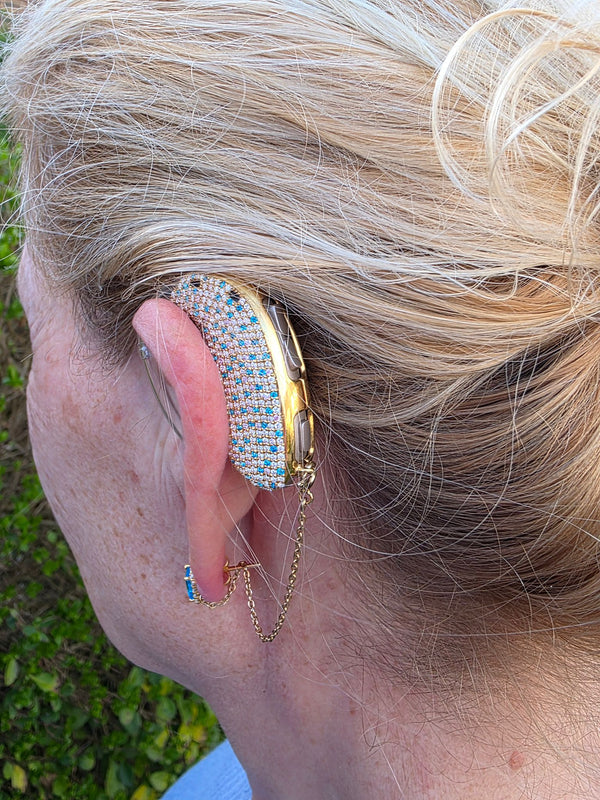 I can't wait to wear this out. It is a great way of expressing my individuality and style, especially coupled with other jewelry, accessories, and paired with different utfits. My auditory implant saved my life so why not flaunt it with sparkles and flair?!